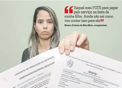 “Saquei meu FGTS para pagar pelo serviço na festa da minha filha. Ainda não sei como ela” vou contar isso para Gleisse Cristina da Silva Melo, recepcionista